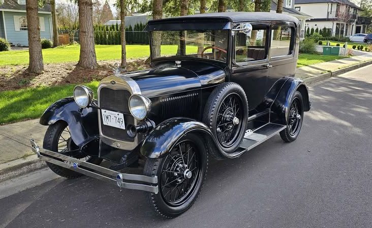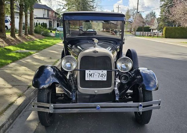Description Rare “Early 1928” Model A – Featuring the highly sought-after original red/orange steering wheel and early production details. History: Incredible provenance. Owned by one family for 50 years; I am only the 3rd owner. Purchased from a local automotive body shop expert. The 90-year-old original owner is still local! Condition: Mechanical: Runs/drives great. Turn-key and professionally maintained. Exterior: All-black with black spoked rims. Clean body; front end professionally refreshed. Interior: Tan cloth in excellent shape (likely an older high-quality refresh). Location: Langley, BC. A clean, documented “survivor” style driver with a rare story. Serious inquiries only. No trades, $OBO$