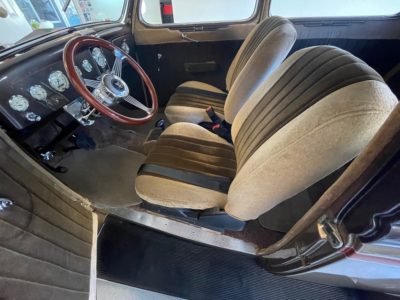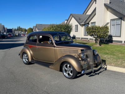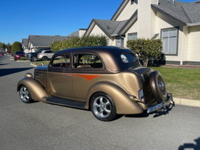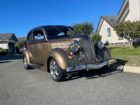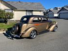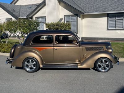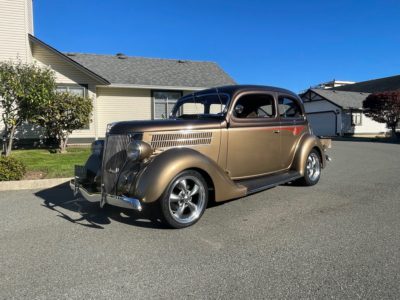 1936 Ford Deluxe Tudor Bustle Back Sedan, [ Trunk Back ] ,straight as an arrow and fit and finish is of high quality throughout. Ford in Ford Streetrod 5.0 HO LTR. V8 power , Fuel injected, 4 Speed automatic overdrive transmission [ OAD ], Recently installed Mustang 11 front clip, Ceramic coated headers and Walker custom exhaust, Rear is Independent suspension [ T-Bird ] 92 inch [ 8.8 -3:75 gears ] , All Steel car with correct roof insert, Deluxe windows with opening windshield and the both front and rear have the 4 window vent option which means you can open the windows 4 inches sideways and also up and down, Banjo steering wheel, working cowl vent, Blue Tooth Audio new $7000 all hidden speakers and unit, Auto Meter gauges and stock dash , New tires and rime in 2024 custom ordered, New power brake booster and valve, New master brake cylinder 2025, Hidden hitch, Cloth interior throughout is as new and front seat move and fold forward room for any size person to access the rear seat area. Great family Hot Rod with very good paint and bright work, good glass throughout, Ebrake, Heater, wipers, this car can be driven any distance in comfort and safety.reply for all 90+ photos and owners contact #. No Trades please.