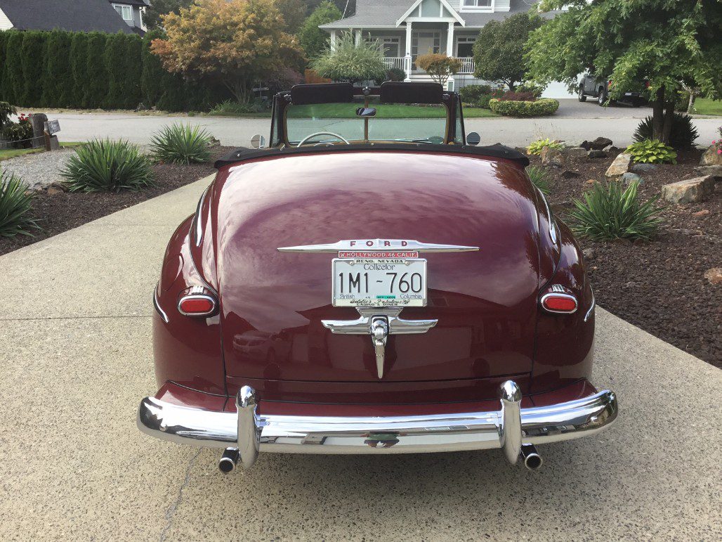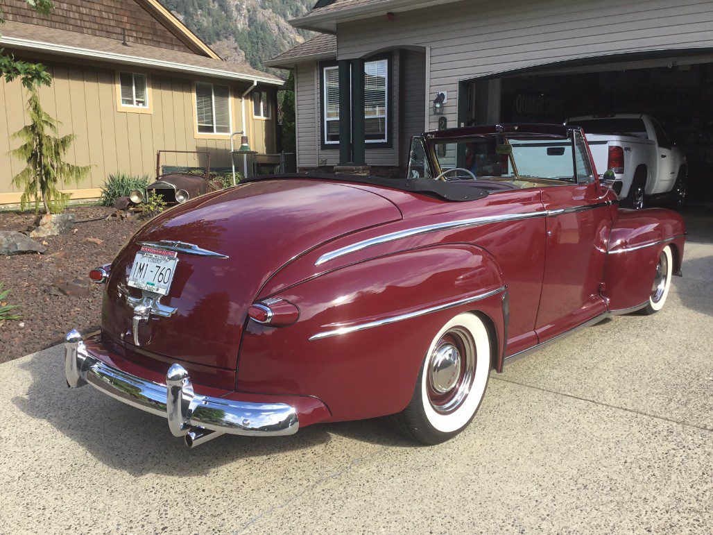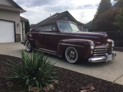 1948 Ford Super Deluxe Convertible black power top by Arnie Schwab, GM Crate 350 HD 330 HP engine, 700R transmission 1996 Ford Explorer 8 3/4 Posie rear end 3:73 gears with 31 spline axles, Willwood power 4 wheel disc brakes, TCI independent front suspension, frame built by respected pro builder, Griffen Aluminum radiator and shroud ,Willwood master cylinder full leather interior done right Annie, wired by GM technician, tilt column stock steering wheel, original dash wood grained and door mouldings, GM exhaust manifolds ceramic coated, slight tinted glass, AM-FM radio CD player, heater defroster, front end leather mask for long travel, spare tire new Coker White Wall tires, car cover, have some early history back to 1961 well respected BC and Washington people contributed to the build of this car. Very comfortable and pleasant car to drive. Contact me for owner # HEALTH FORCED SALE BRING ALL CASH OFFERS , NO TRADES PLEASE