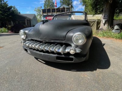 1949 Merc convertible that I am selling. It is a builder, Great body and hardly any filler, no rust, front Chevelle frame clip, 9″ ford rear end. All top bows, No interior. I also have a good 351 Ford Windsor, C-6 trans for it. I am in Parksville BC. on Vancouver Island. A great start to a great rare car. Reply for owners contact info