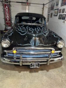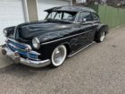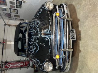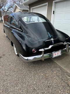 1950 Chevrolet FleetLine Deluxe formerly owned & pinstriped by “BOOTS” OLSEN. Only 5600 kms showing since a frame off refresh in 2018. This is a solid rust free & dependable driver that shows very well. Painted in 2005 shows well minor small chips from driving with Boot Pinstriping, rear Blue Dot tail lights, full custom interior by one of the best in the business Arnie Schwab, only 5600 miles since body off restoration , 350CI/350HP [1969 Block ], Mid range Comp Cam and Lifters, Edelbrock intake and carb 650CFM with Cadillac Air cleaner, 1980 Chevy 10 Bolt rear end with Auburn Positrac 3:42 gears, 700R4 transmission with 2200 stall and electric lockup, Sanderson headers, Dual Magna Flow mufflers, functional side pipes just remove the caps and Hot Rod Sound, Lokar shifter, Lokar kick down and throttle , Lokar dip stick, American Auto Wire Hwy.15 throughout the car, Dolphin gauge package with programable Speedo, new brakes and all lines, new fuel tank and all lines, lowered front and rear,complete new floors and mounts, stainless fasteners used throughout, Coker radials and wheels, all new carpets and sound deadner throughout, includes rear fender skirts painted, standard steering and brakes, no heat or A/C, steering box could use a tightening . Good glass, great interior, rust free classic cruiser. Reply for more info and owners contact info. Car is originally from BC