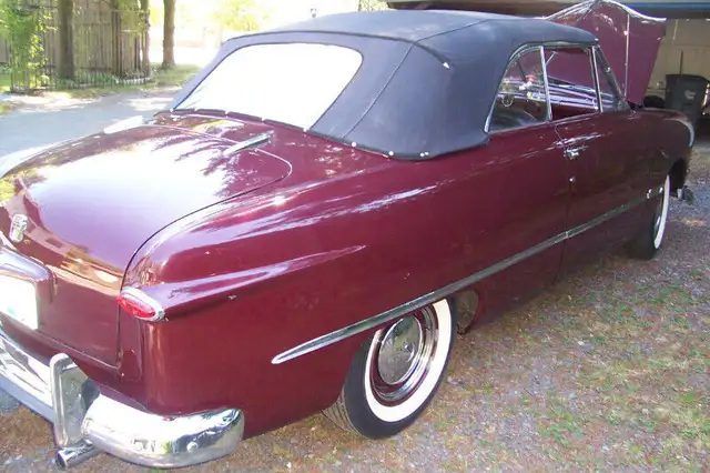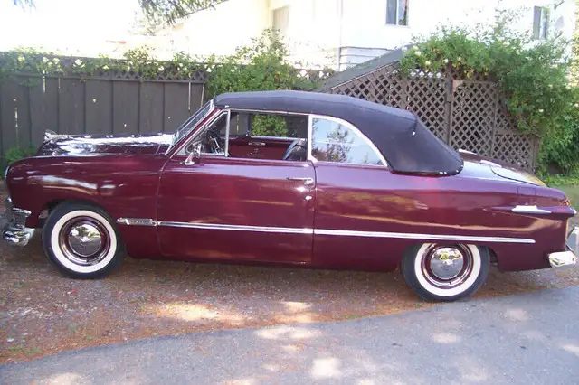 1950 Ford Convertible Deluxe , black and maroon interior with a power black top with plastic rear window, bias wide whitewall tires and stock rims and caps, same owner over 50 years, everything redone and everything works as it should. A dream to Drive top up or down,factory radio, Flathead V8 rebuilt 3 speed and electric overdrive all only 2600 miles since done, price is obo no trades please, reply for owners contact info
