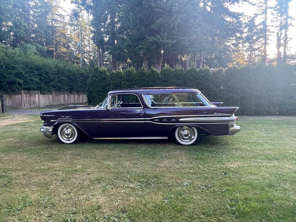 The seller states this vehicle will be sold on a clean British Columbia Regi in his name. This 1957 Pontiac Star Chief Custom Safari Station Wagon is a rare survivor of a limited production run of 1,292. With big-block power and functioning A/C, Lowered 2 1/2 inches. It is ready for summer vacation season.