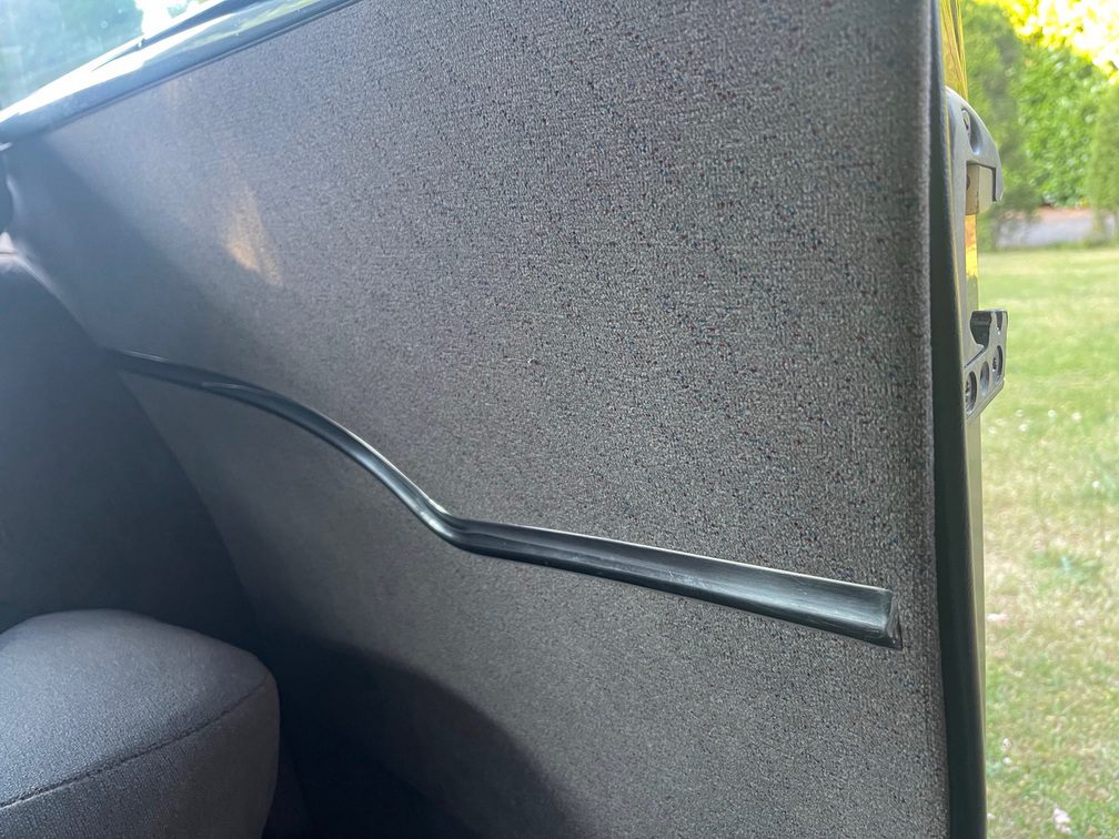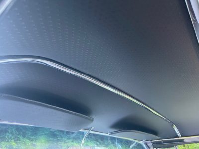 All the unique Custom Safari interior trim items (including the window moldings and headliner bows) are in good condition in the provided photos.