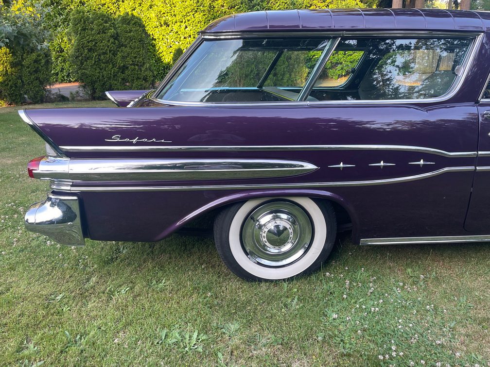 This two-door 1957 Pontiac Star Chief Custom Safari Station Wagon is one of only 1,292 built and has often been referred to the Pontiac Nomad since the two cars share most parts from the firewall back. That Nomad commonality is also why Safari wagons are very rare—many were cannibalized for Nomad restorations. This ’57 Safari was modified by previous owners who replaced the original 347-cubic-inch V8 with a 428-cube Pontiac big-block from a ’68 Bonneville. The interior features the rare factory air conditioning controls and dashboard vents. The interior redone in newer cloth upholstery .
