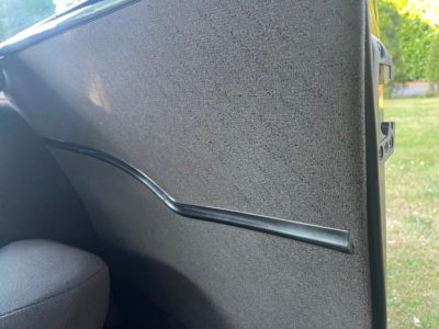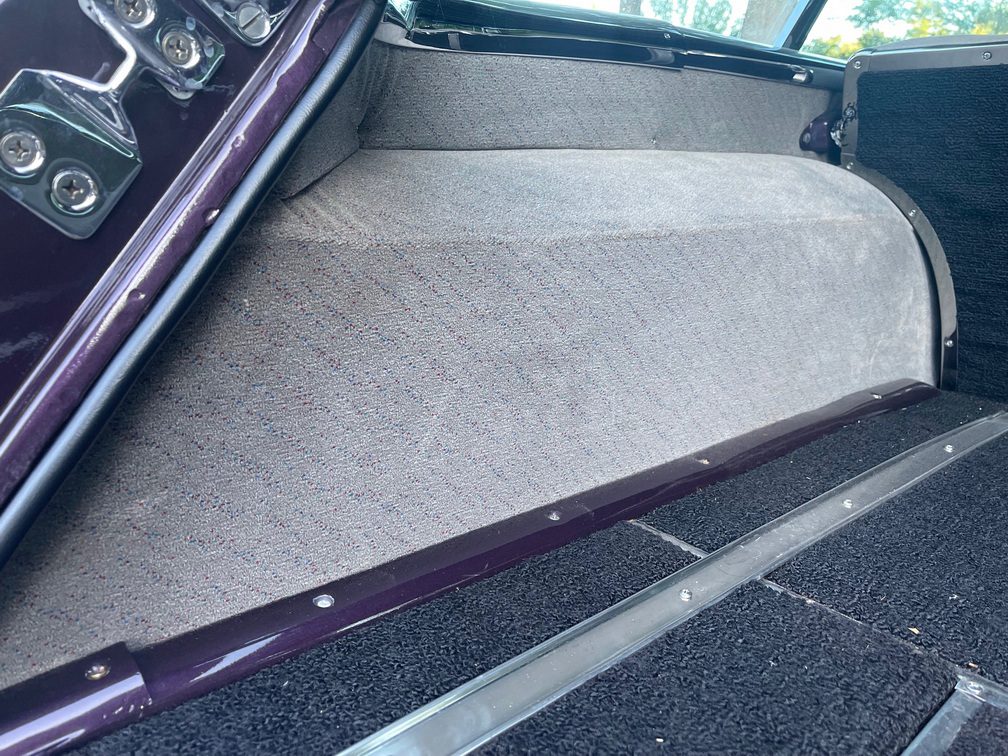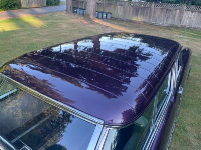 The non-factory purple paint is “shiny and glossy” . The trim tag code HQQ indicates that the primary color was originally Charcoal Grey with the secondary color being Silver Beige.