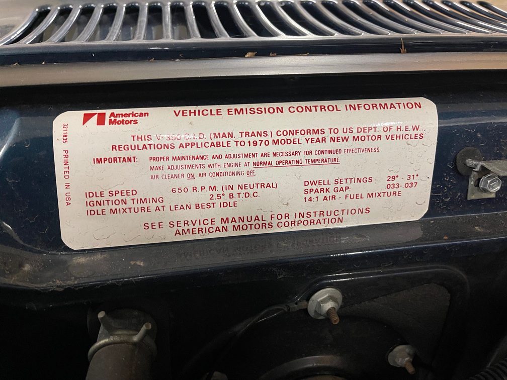 The 1970 AMX is a rare, two-seat American GT-style muscle car, marking the final year of its original, compact unibody design. It features aggressive styling with a “Shadow Mask” paint option, a 360 or 390 cu in V8 (up to 325 hp), Other cars in photo have been Sold.