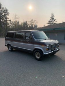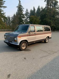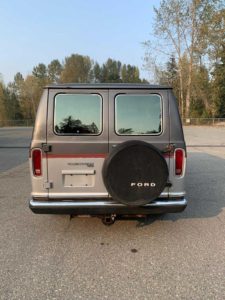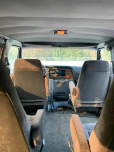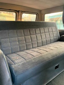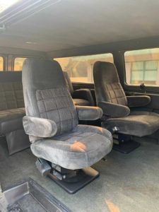 Swivel captains chairs in middle with fold down bench seat in rear.
