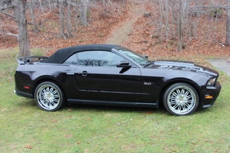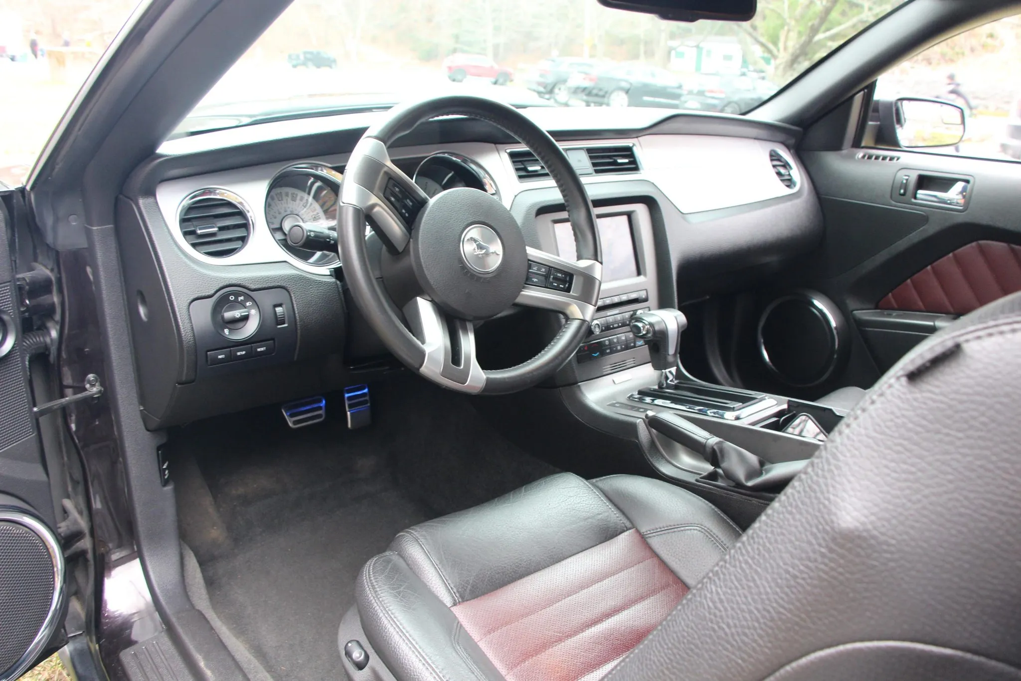 This 2012 Ford Mustang Premium GT is a Canadian-market convertible that has 25k kilometers (~16k miles) and is finished in Lava Red Metallic over Charcoal Black leather with Lava Red inserts. The car is powered by a 5.0-liter V8 paired with a six-speed automatic transmission, and equipment includes the Electronics Package, the GT Convertible Accessory Package 6, a Roush air-intake system, a limited-slip differential, a black cloth convertible soft top, rear parking sensors, 19″ Drift Racing wheels, heated front bucket seats, dual-zone automatic climate control, SYNC, touchscreen navigation, and a Shaker sound system. This S197 is now offered in Canada at no reserve with a window sticker, the owner’s manual, a set of 19″ five-spoke wheels, a clean Carfax report, and Nova Scotia registration. The car is finished in Lava Red Metallic, a color only offered in 2012, and it has the GT Convertible Accessory Package 6, which added a hood scoop, a rear spoiler, side scoops, and a revised decklid panel. Additional exterior details include a power-operated black cloth soft top, rear parking sensors, sequential LED taillights, dual exhaust outlets, and power-adjustable side mirrors. The chrome-finished 19″ Drift Racing wheels are mounted with Sunwide tires, and stopping power is provided by silver-finished calipers fitted over vented discs at each corner. A set of 19″ five-spoke wheels wrapped in Pirelli tires are included in the sale. The cabin features heated power-adjustable front bucket seats trimmed in Charcoal Black leather with Lava Red inserts, and appointments include remote start, dual-zone automatic climate control, SYNC, touchscreen navigation, a Shaker sound system, an AM/FM/CD stereo, keyless entry, and cruise control. The leather-wrapped multifunction steering wheel frames a 260-km/h speedometer, an 8k-rpm tachometer, and gauges for fuel level, coolant temperature, voltage, and oil pressure. The digital odometer indicates 25k kilometers (~16k miles), approximately 421 of which were added under current ownership. The 5.0-liter Coyote V8 was factory rated at 412 horsepower and 390 lb-ft of torque, which is sent to the rear wheels through a six-speed automatic transmission and a limited-slip differential. A Roush air-intake system has been fitted along with a First Canadian Protection Products corrosion control module.