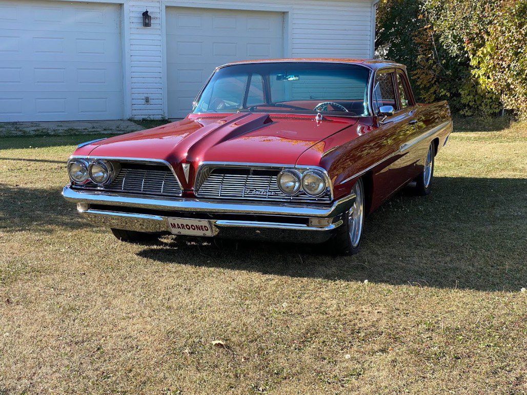 1961 Pontiac Laurentian Tudor Post very rare car Model 7511 – the only other one known is located in new Zealand, over $140000 invested car is a Show Stopper and needs nothing Appraised at $104000. Asking $58,500. 502RJ, TKO600 5 speed, Ford 9” rear end custom built to fit this car, full air ride from Air Ride Technologies, Street Challenge suspension system also from Air Ride Tech. Less than 5,000km’s. This car got me on ‘My Classic Car’ with Dennis Gage…. 2 minutes of fame. First summer I started showing it. It’s still on utube ( Rocking Red Deer 2012 with Dennis Gage ). Time to part ways located in Galahad Alberta Canada. Reply for owners contact info and more photos