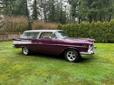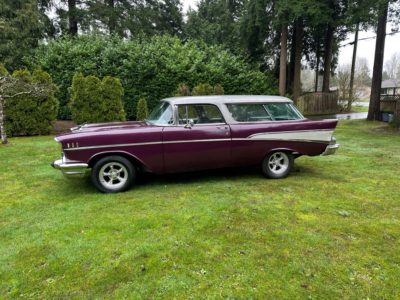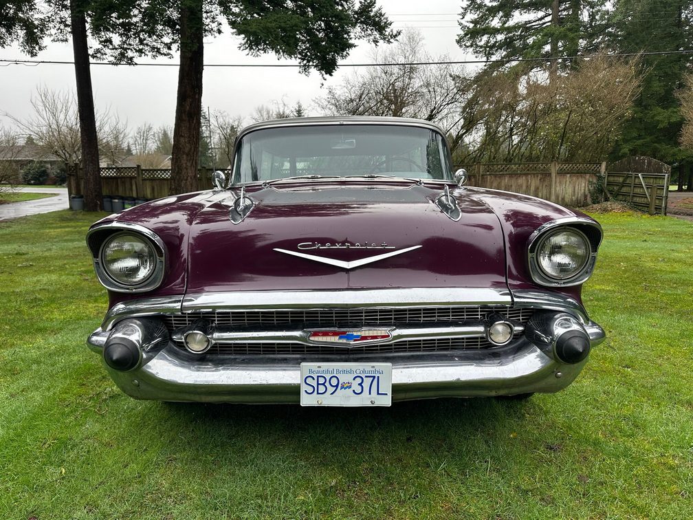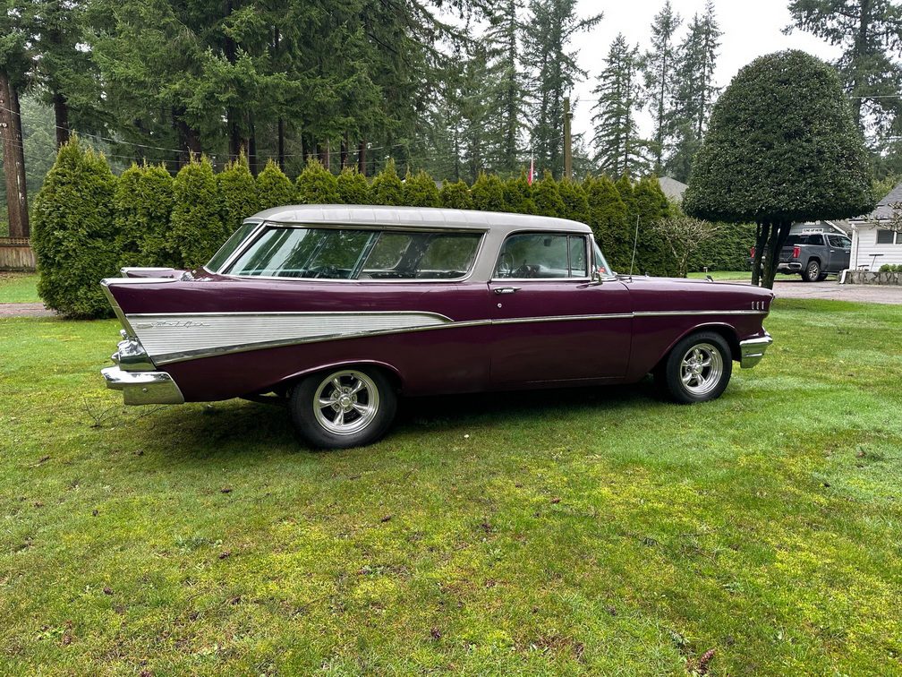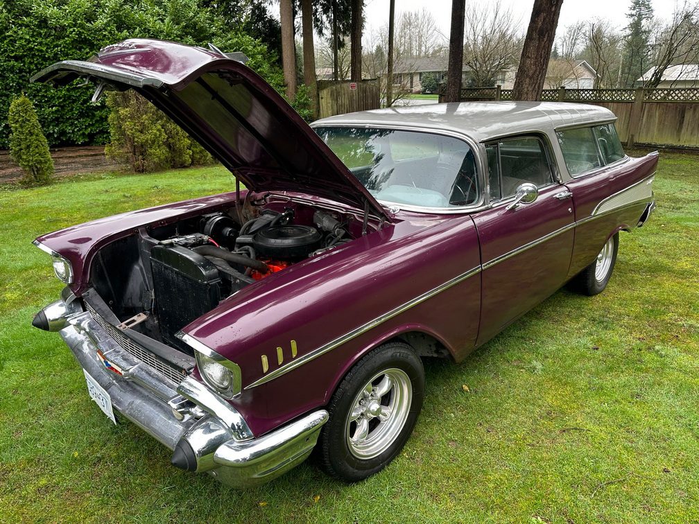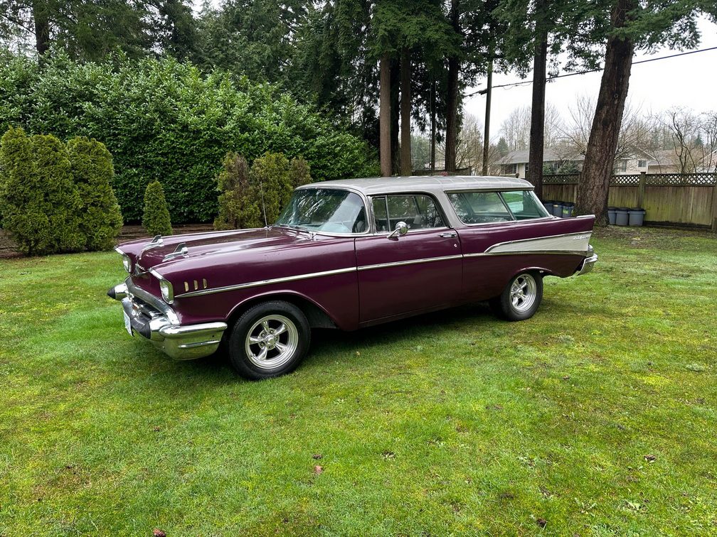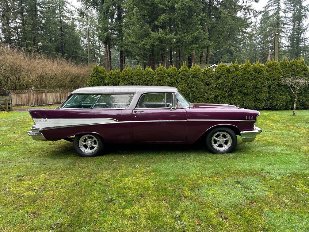 1957 Chevrolet Nomad Sports wagon, 350CI/Turbo 350 Auto, Power front disc brakes drum rears, good shocks, dual exhaust, Radials on American Racing rims, Original interior and headliner and headliner bows except carpets and sound deadner were done some years ago but clean, Bowtie AMFM, Electric wipers, Heater, Gas gauge runs out at 1/4 tank sender needs adjustment, could use some new rubbers on doors and rear gates, chrome decent but not restored, front bumper is a one piece original but have a near mint chromed three piece with hardware included, stainless good but not restored, glass good, has some cool glass etching on no drafts and rear sliders, car is rock solid with 40 year old paint. priced to sell at $47500. BC registered.