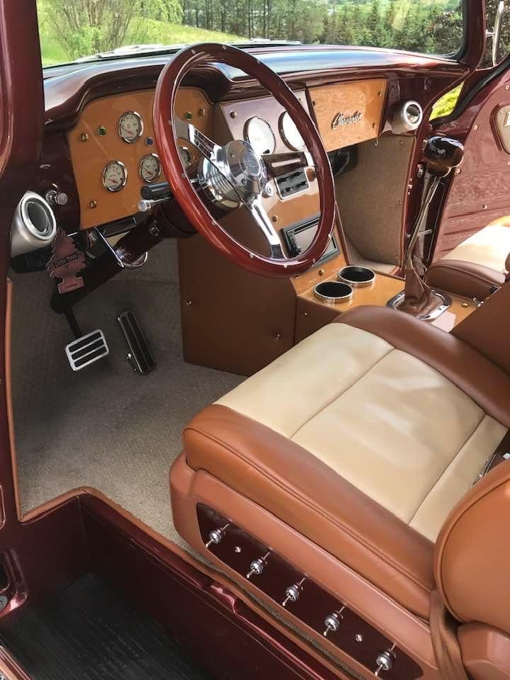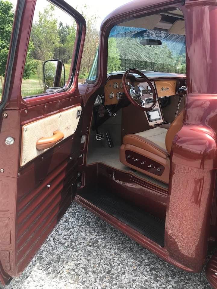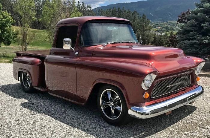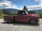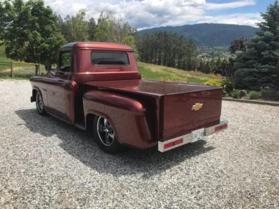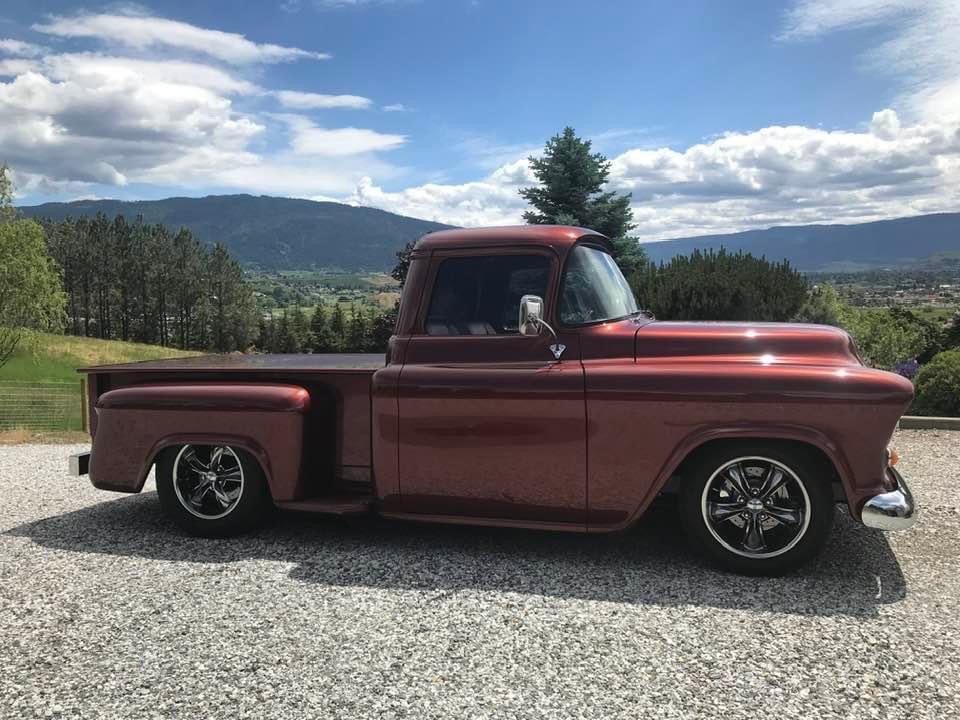 1956 Chevrolet Pickup• “Art Morrison” custom chassis and AM 9 inch differential with Strange Engineering, Posi trac, 3.50 gears, and 31 spline axles • Detroit Speed (20 to 1) power rack and pinion steering • 4 wheel 12 inch Wilwood 4 piston caliper disc brakes • GM crate 502 Ram Jet engine • Sanderson ceramic coated headers • 3 inch stainless exhaust • Custom built 4L80E transmission, 2600 stall torque, Compushift controller • Rod & Performance 5 core radiator with dual fans • Vintage Air front runner • Custom front grille and rear bumper • Pro-Pic box and tunnel cover • 22 gallon stainless tank • 10-way power seats (Lincoln Navigator) covered in Ultraleather • Custom wood dash with Autometer gauges • Ididit chrome steering column • Vintage Air heating/cooling system • 17 inch Foose wheels (black chrome) • Color is Chrysler “Cognac Crystal” • Vehicle appraised about 5 years ago and is located in Vernon, BC • Build is fully documented and with lots of photos • Only 12,780 miles • Price recently reduced to $105,000 or OBO Canadian or $80K US Dollars, reply for full details and owner contact info receipts exceeding $250K